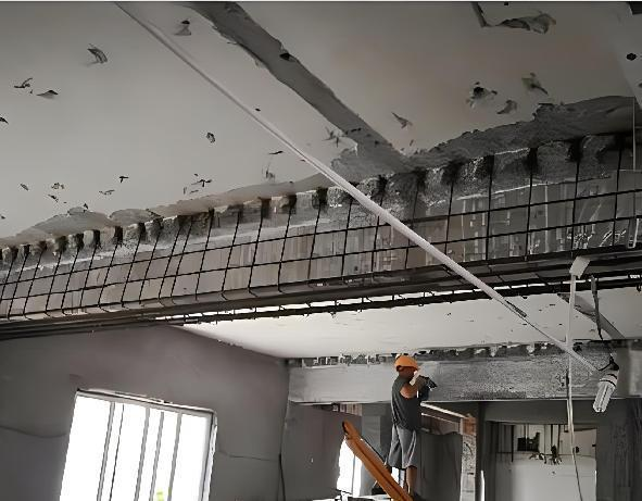 加大截面加固法是一種常用的建筑結構加固技術,通過在原有構件的基礎上增加新的混凝土和鋼筋,從而提高構件的截面尺寸和承載能力。本項目中,我方首先對裂縫區(qū)域進行了清理和預處理,隨后在裂縫處增設鋼筋網(wǎng),并澆筑新的混凝土,以增大構件截面,達到加固目的。